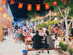 Không gian nhộn nhịp, thoải mái, đậm chất địa phương, tạo nên trải nghiệm vui chơi – ăn uống về đêm đặc trưng của Cam Lâm.